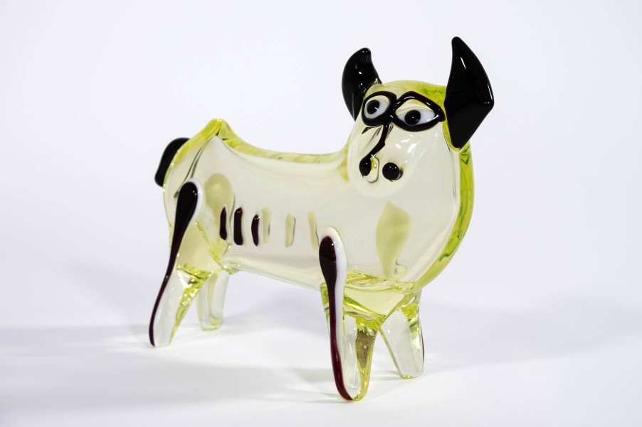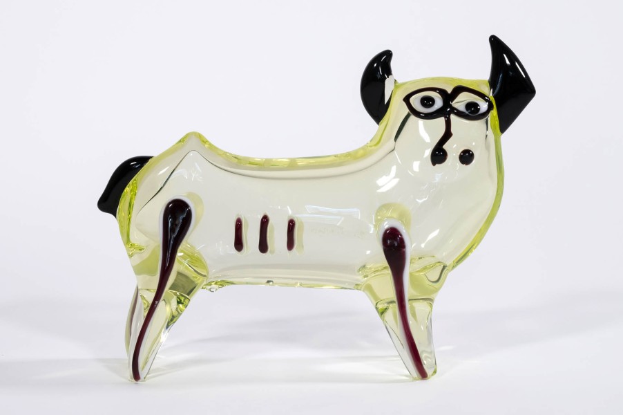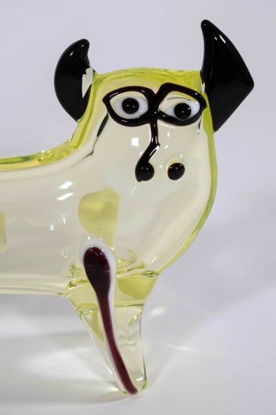 Vase based on a design by Pablo Picasso (1881-1973). Manufactured in clear uranium yellow glass and colorful glass details rich in pigment.
