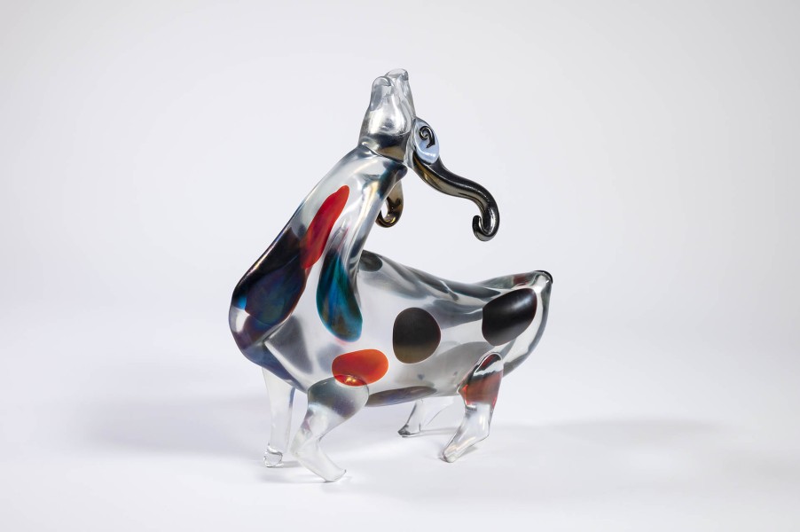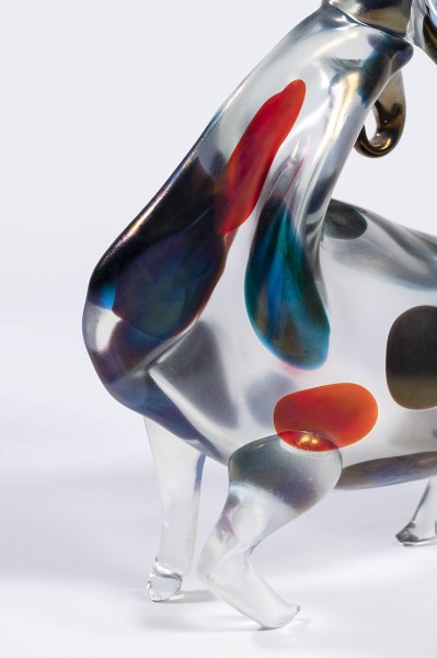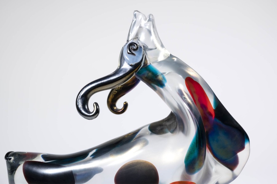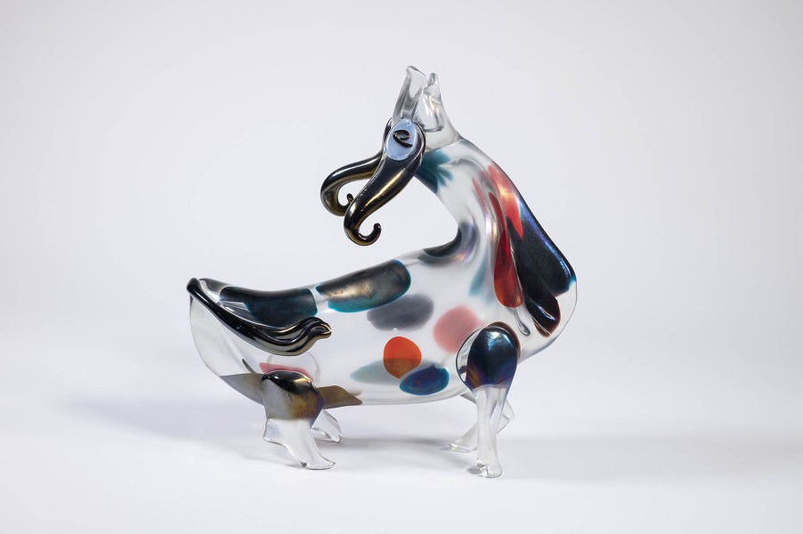 Sculptural work based on a design by Oscar Kokoschka (1886-1980). Manufactured in lightly iridescent clear glass and colorful glass details rich in pigment.