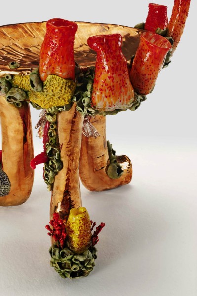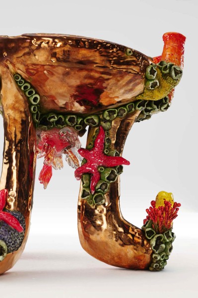 The stool, made of an alloy of copper and tar, was found in the depths of the sea (3.5m) east of the island, next to the sewing machine dump called “Tomb of Singer”.